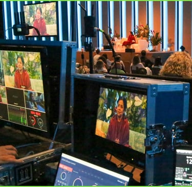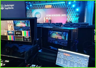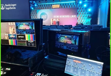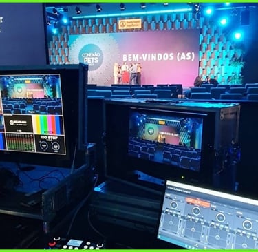 Transmmissão simultânea para painel de led e projeção, captação de imagens e também transmissão para web, na sua plataforma preferida.